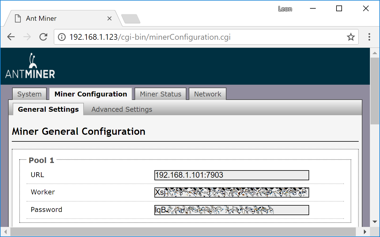 Example configuration showing a single Bitmain Antminer D3 connected to a p2pool-dash node on the local network#