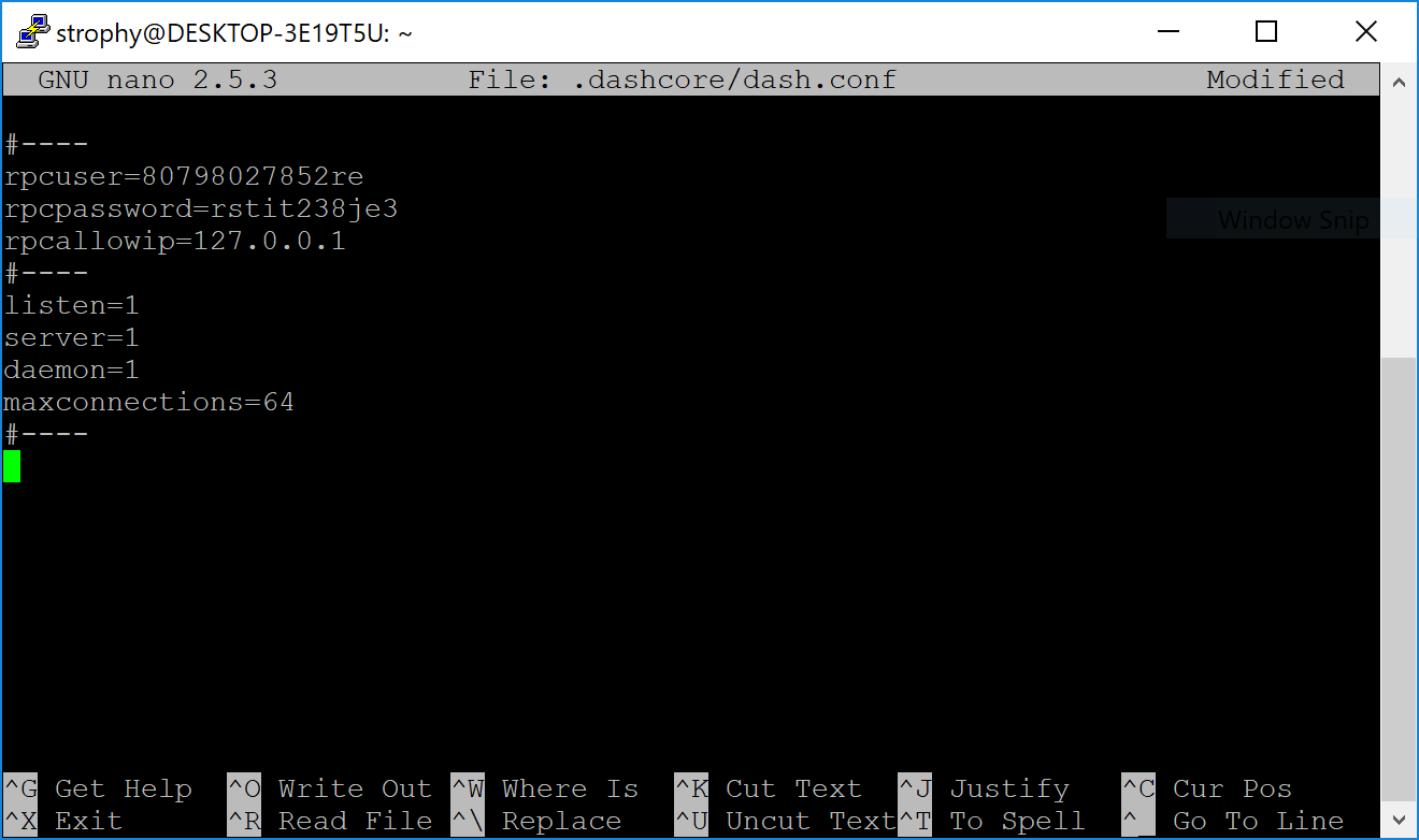 • rpcuser: enter any string of numbers or letters, no special characters allowed