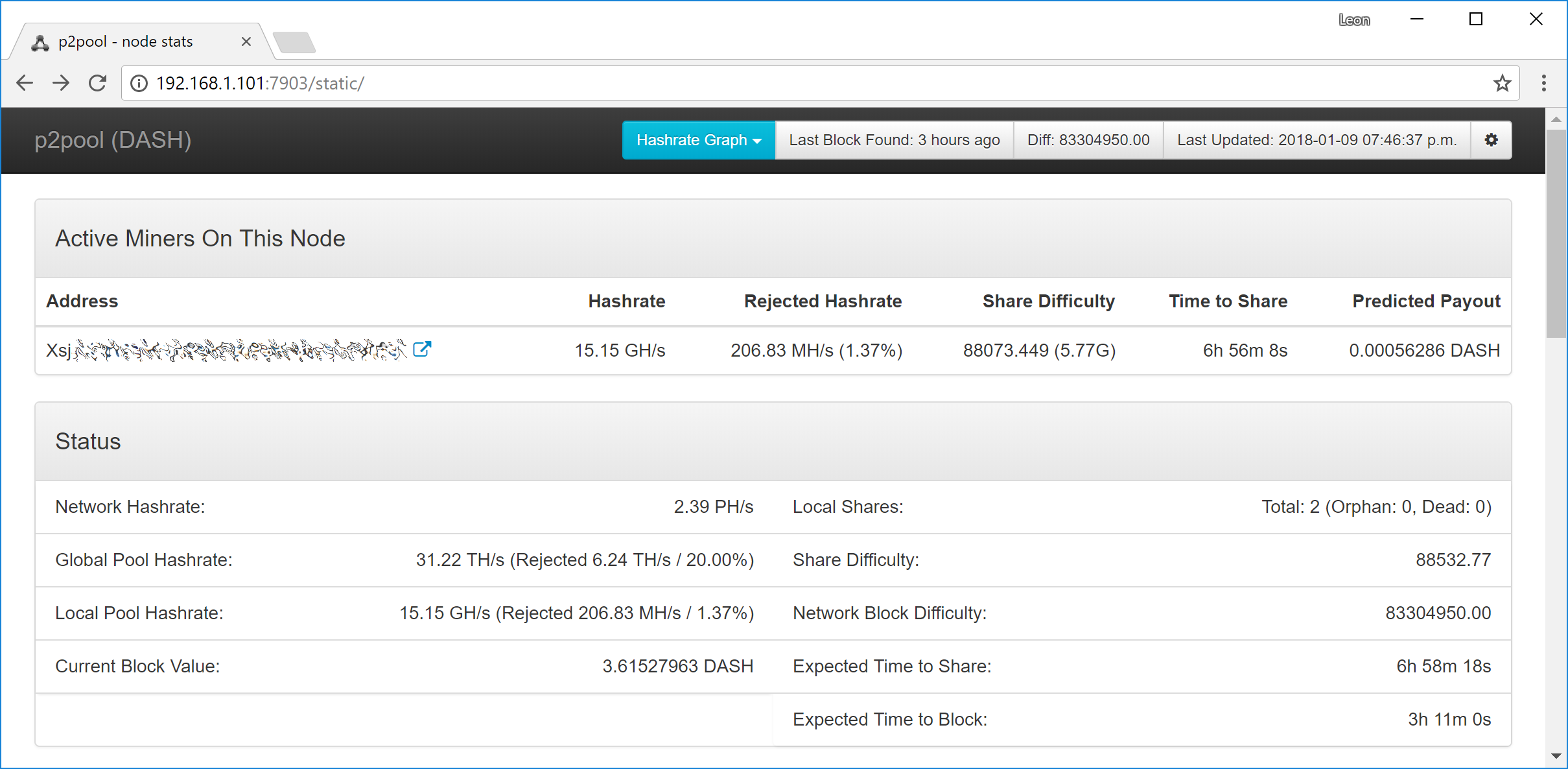 You can then monitor your node by browsing to the following addresses, replacing <ip_address> with the IP address of your P2Pool node: