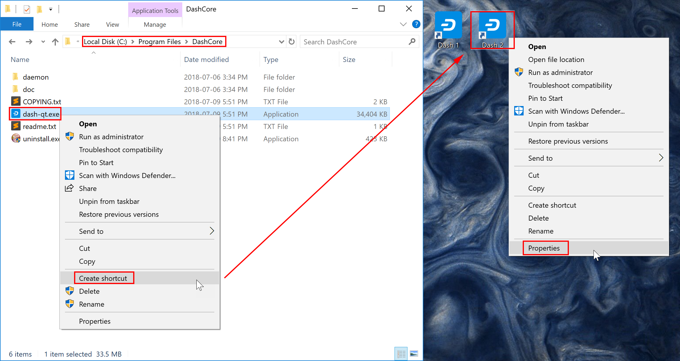 instances of Dash Core simultaneously. Create two (or more) shortcuts on