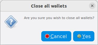 To close all wallets, click File -> Close All Wallets… and then click Yes on the Close all wallets confirmation screen.