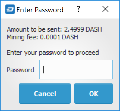 Password prompt and transaction confirmation in Dash Electrum wallet#