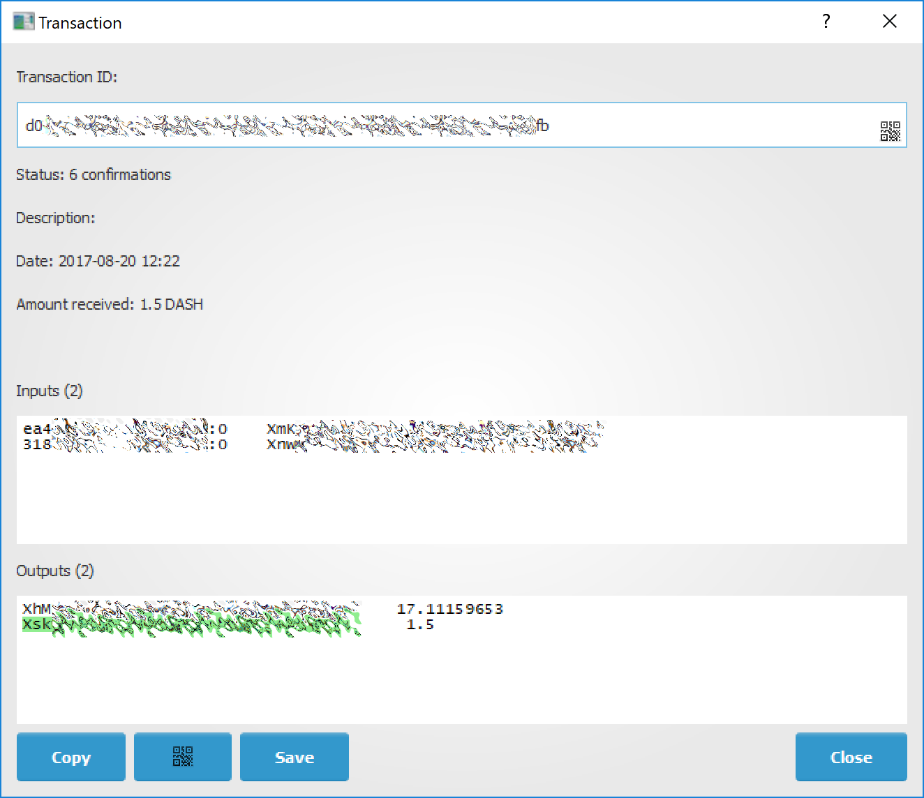 To view additional transaction details, right click a transaction on the History tab and select Details from the context menu. You can also use this menu to copy the transaction ID to the clipboard (this can be used as proof that a given transaction occurred), edit the transaction description for your records or view the transaction on an external block explorer.